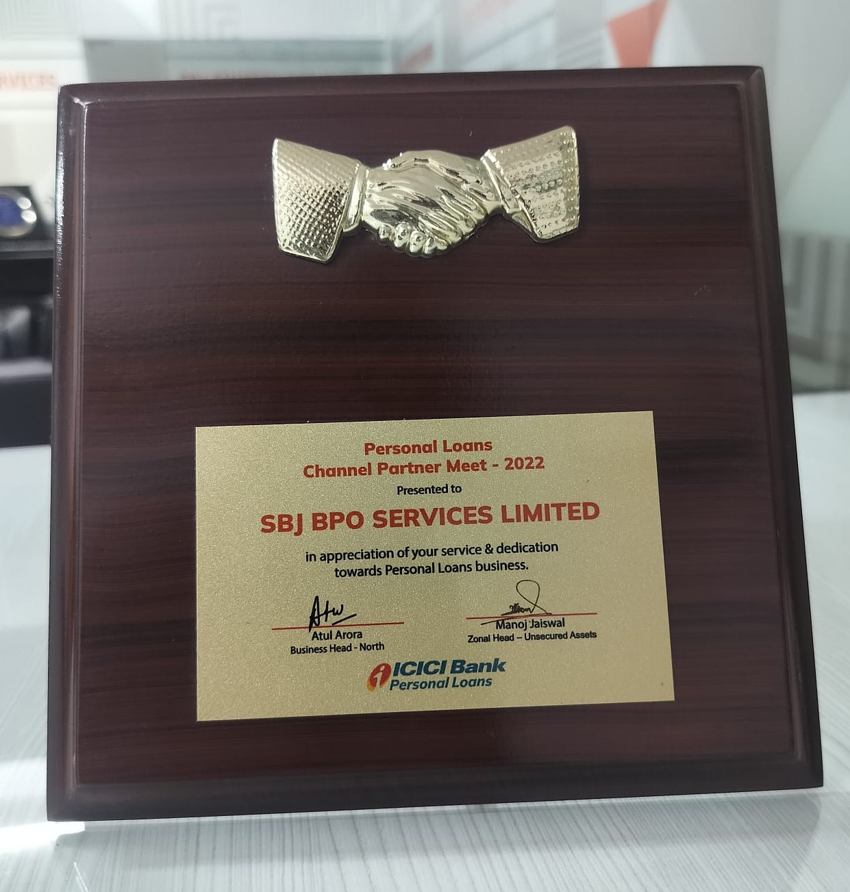 Presented to SBJ for dedicated service in Personal Loans at Channel Partner Meet.