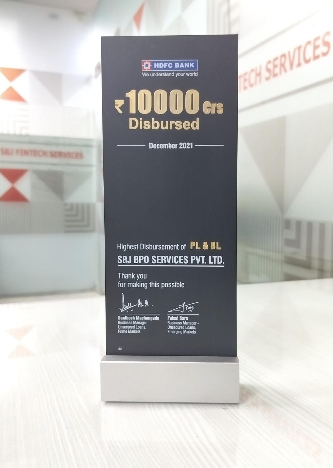SBJ achieved ₹10,000 Cr BL & PL disbursal — highest via HDFC Bank.