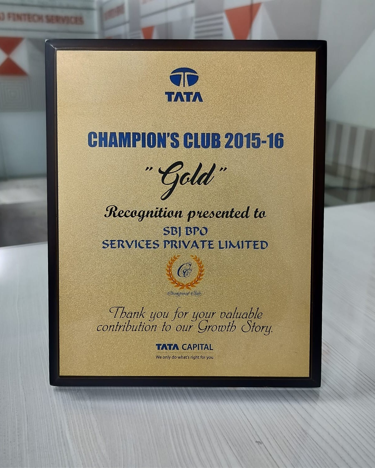 Champion's Club 2015–16 "Gold" awarded to SBJ — thank you for your contribution